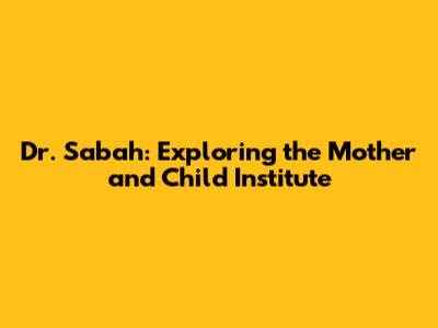 Dr. Sabah: Mother And Child Institute Details