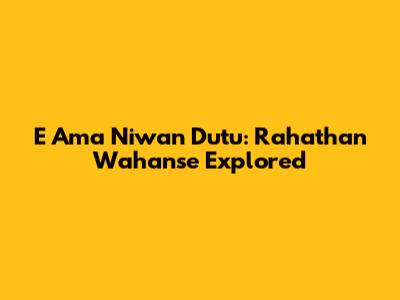 E Ama Niwan Dutu: Rahathan Wahanse Explored
