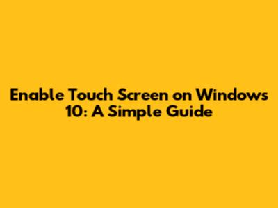 Enable Touch Screen On Windows 10: A Simple Guide