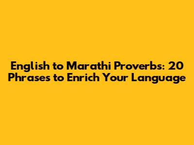 20 English to Marathi Proverbs and Their Meanings