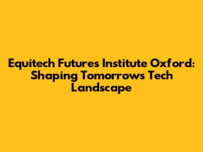 Equitech Futures Institute: Oxford's Hub For Innovation
