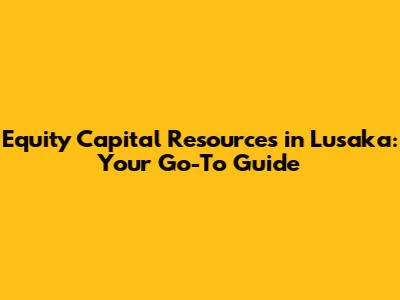 Equity Capital Resources In Lusaka: Your Go-To Guide