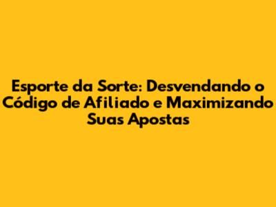 Esporte Da Sorte: Como Usar O Código De Afiliado E Apostar