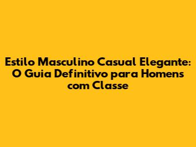 Estilo Masculino Casual Elegante: Guia Completo Para Homens Modernos