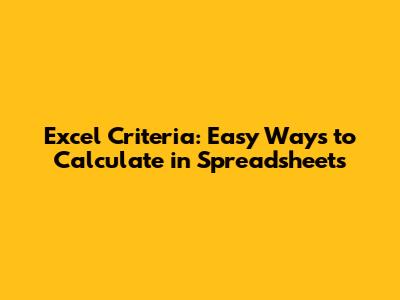 Excel Criteria: Easy Ways To Calculate In Spreadsheets