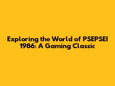 Exploring The World Of PSEPSEI 1986: A Gaming Classic