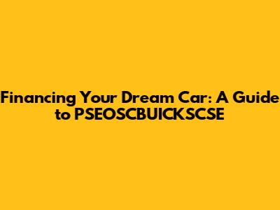 Financing Your Dream Car: A Guide To PSEOSCBUICKSCSE