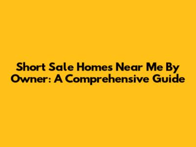 Hey guys! Looking for short sale homes near you, possibly directly from the owner? You've landed in the right spot. Navigating the world of real estate can be tricky, especially when you're trying to snag a deal on a short sale. Let's break down what short sales are, how to find them, and what to watch out for, especially when dealing directly with owners. Buying a home is a huge decision, and understanding all the ins and outs of short sales can save you time, money, and a whole lot of headaches. So, buckle up, and let’s dive into the nitty-gritty of finding short sale homes. Remember, it’s all about doing your homework and being prepared for a potentially longer and more complex process than a traditional home purchase. Don’t be afraid to ask questions and seek professional advice along the way. Happy house hunting!