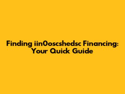 Finding Iin0oscshedsc Financing: Your Quick Guide