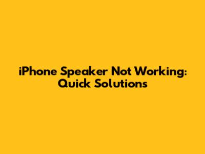 Fix IPhone Speaker Not Working: Quick Solutions