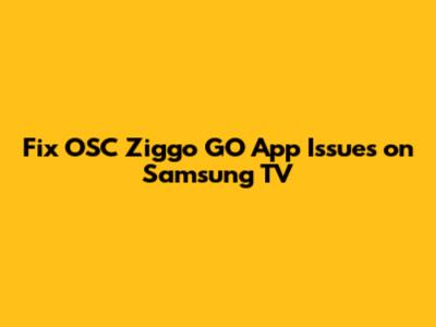 Fix OSC Ziggo GO App Issues On Samsung TV