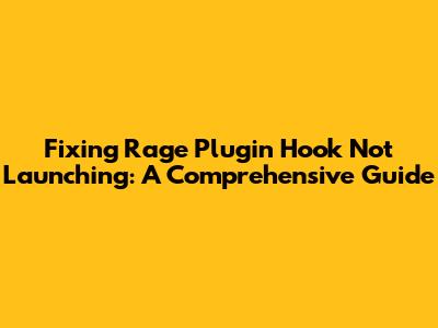 Fix Rage Plugin Hook Not Launching: A Quick Guide