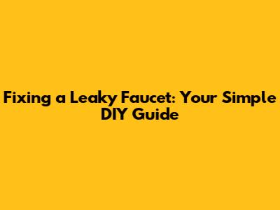Fixing A Leaky Faucet: Simple DIY Guide