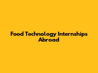 Food Technology Internships: Your Ticket Abroad