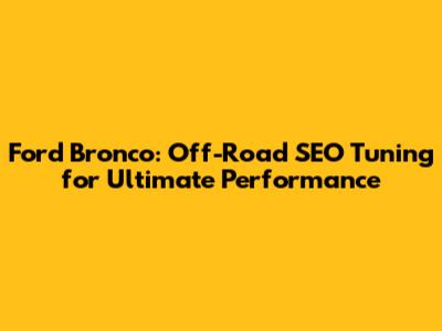 Ford Bronco: Off-Road SEO Tuning For Ultimate Performance
