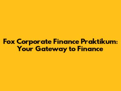 Fox Corporate Finance Praktikum: Your Gateway To Finance