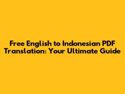 Free English To Indonesian PDF Translation Guide