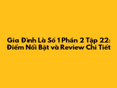 Gia Đình Là Số 1 Phần 2 tập 22 tiếp tục mang đến cho khán giả những tình huống dở khóc dở cười, những bài học ý nghĩa về tình thân và cuộc sống gia đình. Trong tập này, các nhân vật chính lại đối mặt với những thử thách mới, những mối quan hệ phức tạp và những tình huống hài hước không thể nào quên. Nào, hãy cùng nhau khám phá những điểm nổi bật, những chi tiết thú vị và những đánh giá chi tiết về tập phim này nhé, các bạn!