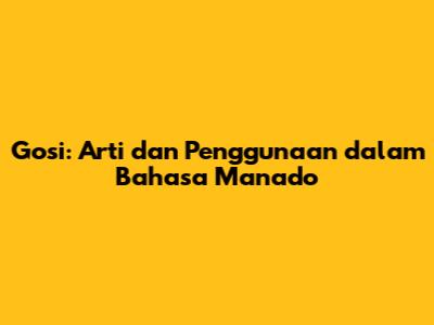 Gosi: Arti Dan Penggunaan Dalam Bahasa Manado