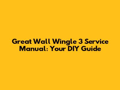 Hey guys! Ever found yourself scratching your head, staring at your trusty Great Wall Wingle 3, and wishing you had a magic book that could tell you exactly what's going on under the hood? Well, you’re in luck! This guide is all about the Great Wall Wingle 3 service manual, your new best friend for keeping your ride in tip-top shape. Whether you're a seasoned mechanic or a weekend warrior, having a service manual is like having a professional by your side, guiding you through every repair and maintenance task. Let's dive in and see how this manual can save you time, money, and a whole lot of frustration.