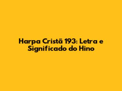 Harpa Cristã 193: Letra E Significado Do Hino
