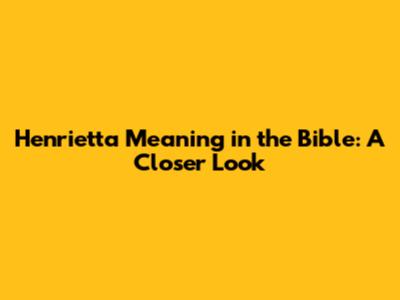 Henrietta Meaning In The Bible: A Closer Look