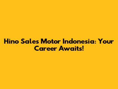 Hino Sales Motor Indonesia: Your Career Awaits!