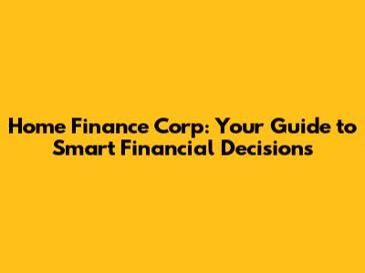 Home Finance Corp: Your Guide To Smart Financial Decisions