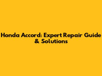 Honda Accord: Expert Repair Guide & Solutions