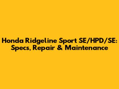 Honda Ridgeline Sport SE/HPD/SE: Specs, Repair & Maintenance