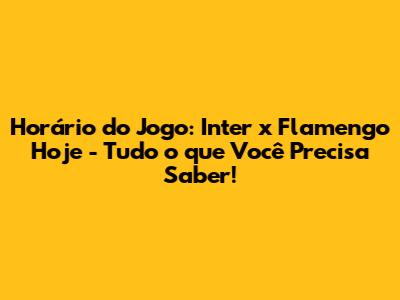 Horário Do Jogo: Inter X Flamengo Hoje - Saiba Tudo!