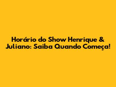 Hey pessoal! Se você é fã de sertanejo e está ansioso para o show do Henrique & Juliano, você veio ao lugar certo! A pergunta "que horas começa o show do Henrique e Juliano hoje" é super comum entre os fãs, afinal, ninguém quer perder a primeira música, né? Neste artigo, vamos mergulhar nos detalhes para que você não perca nada do show, desde o horário previsto até algumas dicas para aproveitar ao máximo essa experiência musical.