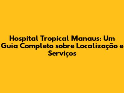 Hospital Tropical Manaus: Localização E Informações Essenciais