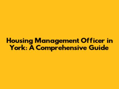 Housing Management Officer In York: A Comprehensive Guide