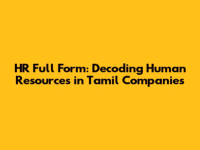 HR Full Form: Decoding Human Resources In Tamil Companies