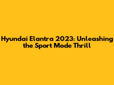 Hyundai Elantra 2023: Unleashing The Sport Mode Thrill