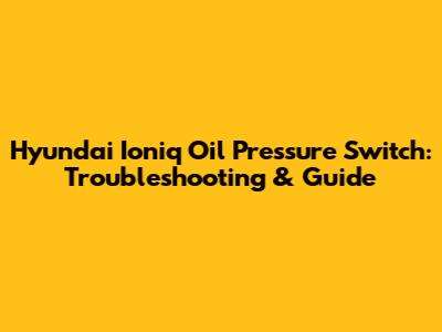 Hyundai Ioniq Oil Pressure Switch: Troubleshooting & Guide