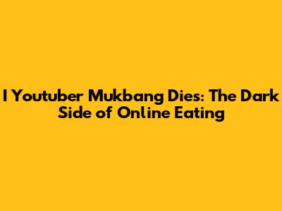 I Youtuber Mukbang Dies: The Dark Side Of Online Eating