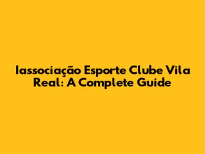 Iassociação Esporte Clube Vila Real: A Complete Guide