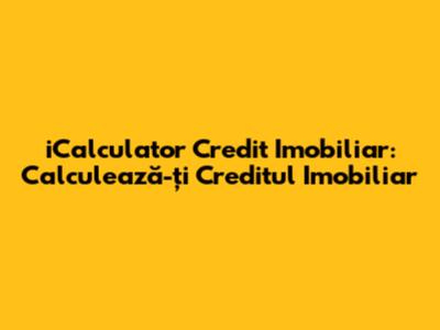 ICalculator Credit Imobiliar: Calculează-ți Creditul Imobiliar
