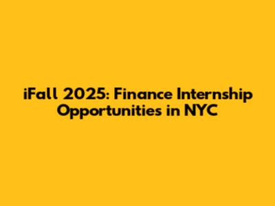IFall 2025: Finance Internship Opportunities In NYC