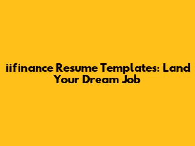 Iifinance Resume Templates: Land Your Dream Job