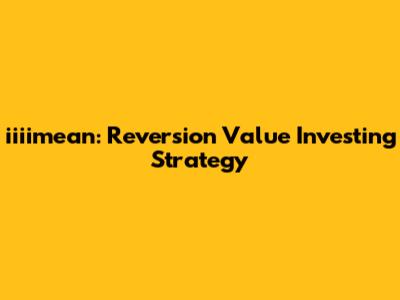 Iiiimean: Reversion Value Investing Strategy