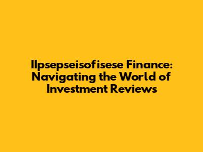 IIpsepseisofisese Finance: A Deep Dive Into Investment Reviews