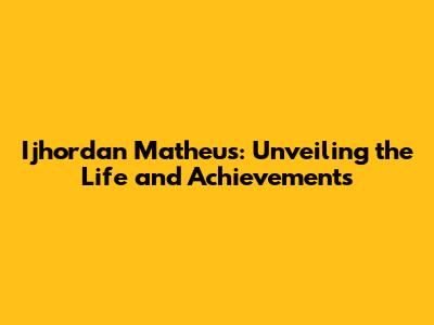 Ijhordan Matheus: A Journey Of Talent And Dedication