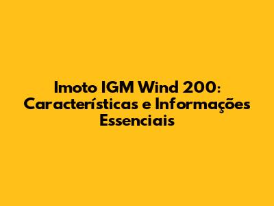 Imoto IGM Wind 200: Características E Informações Essenciais