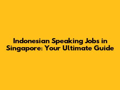 Indonesian Speaking Jobs In Singapore: Your Ultimate Guide