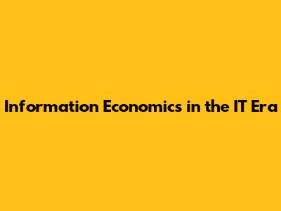 Information Economics In The IT Era