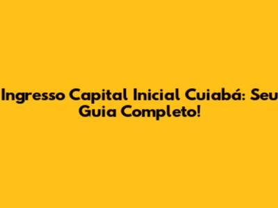 Ingresso Capital Inicial Cuiabá: Tudo O Que Você Precisa Saber!