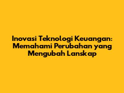 Inovasi teknologi keuangan (fintech) mengacu pada penggunaan teknologi untuk menyediakan layanan keuangan yang baru atau ditingkatkan. Ini mencakup segala hal, mulai dari pembayaran seluler dan pinjaman online hingga penasihat keuangan robo dan perdagangan algoritmik. Fintech memanfaatkan teknologi seperti kecerdasan buatan (AI), blockchain, data besar (big data), dan komputasi awan (cloud computing) untuk menciptakan produk dan layanan yang lebih cepat, lebih murah, dan lebih mudah diakses daripada layanan keuangan tradisional.